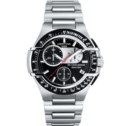 Prestižna moška ura Certina. Vodotesnost: 10ATM Premer: 41mm Steklo: Safirno steklo Ohišje: Jekleno Pašček: Jeklen – kovinski Funkcije: Ura. štoparica,