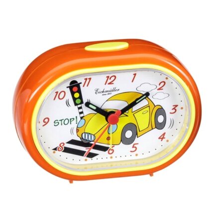 Otroška budilka Eichmuller z motivom Šifra: 9855-2 Motiv: Avto Barva ure: Oranžna Material: Plastika Velikost: 65x90mm Baterije priložene: NE Garancija: