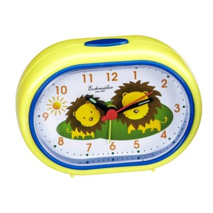 Otroška budilka Eichmuller z motivom Šifra: 9855-10 Motiv: Lev Barva ure: Rumena Material: Plastika Velikost: 65x90mm Baterije priložene: NE Garancija:
