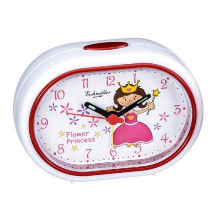 Otroška budilka Eichmuller z motivom Šifra: 9855-1 Motiv: Princeska Barva ure: Bela, rdeča Material: Plastika Velikost: 65x90mm Baterije priložene: NE