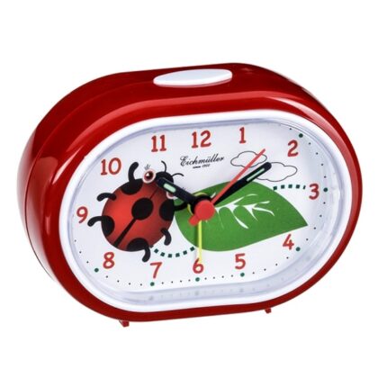 Otroška budilka Eichmuller z motivom Šifra: 9855-9 Motiv: Pikapolonica Barva ure: Rdeča Material: Plastika Velikost: 65x90mm Baterije priložene: NE Garancija: